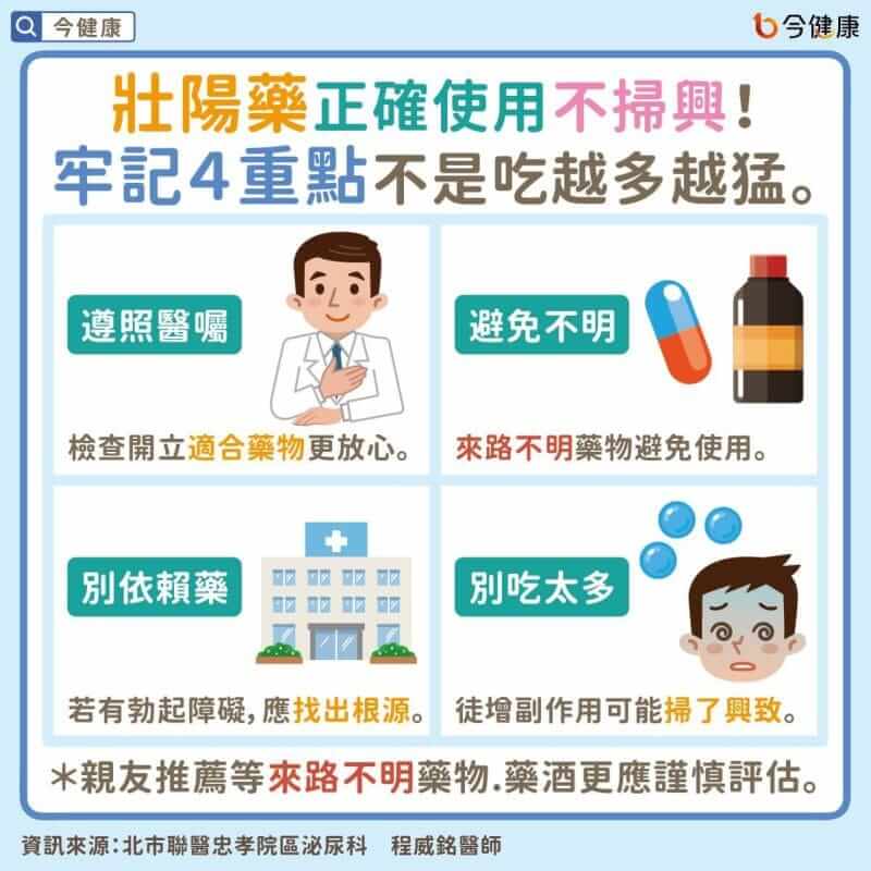 另外,切不要過量服用壯陽藥,按醫師以上藥物皆為處方藥,僅有醫師開立處方箋才可在實體門店領取,不過網路及市面上充斥著許多低價仿冒藥物,應格外小心,切勿上當。