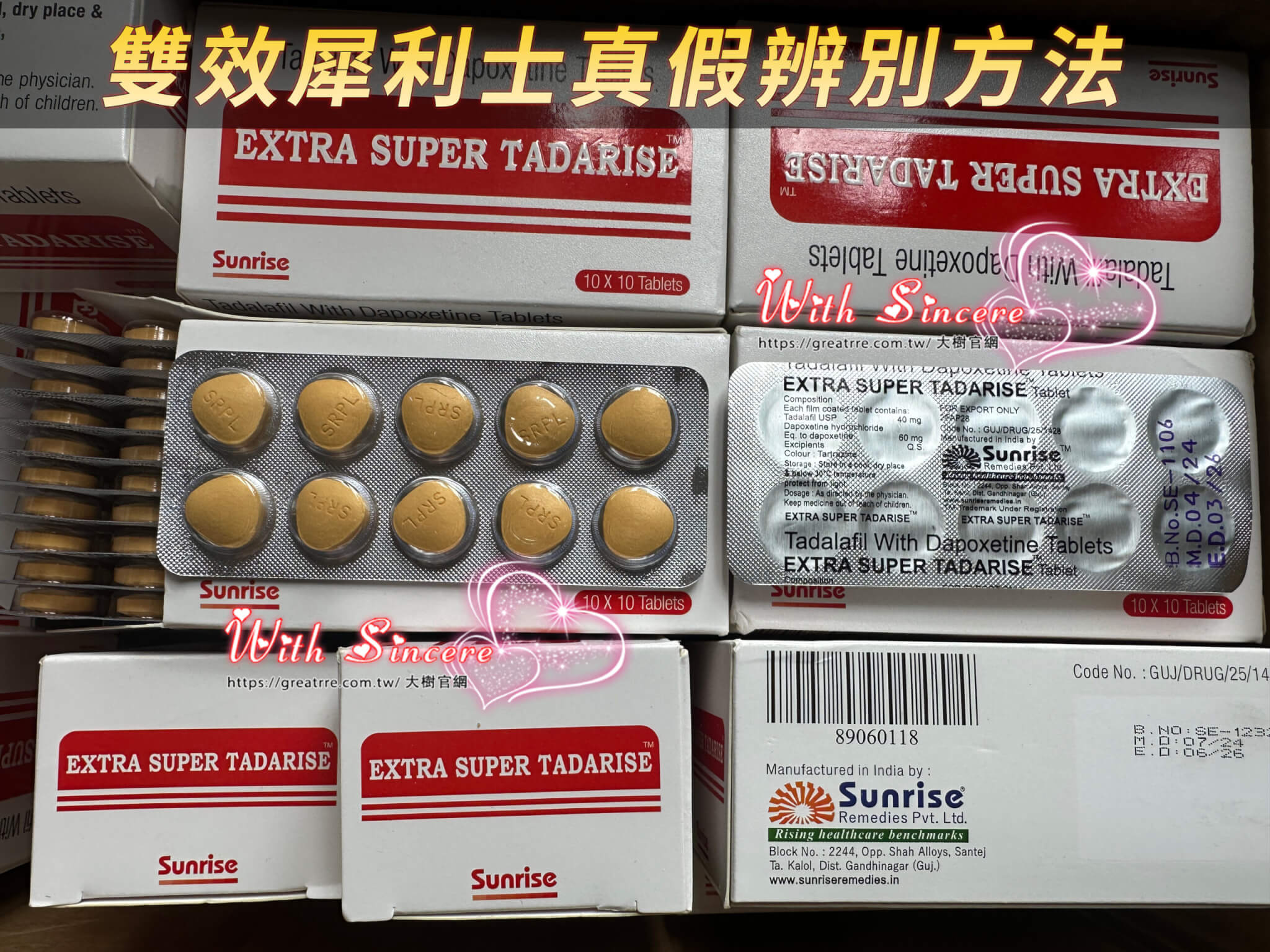 • 正品成分:雙效犀利士的正品成分為他拉達非40mg與達泊西汀60mg。購買前請仔細檢查外包裝或藥品內部說明書上的成分標註。