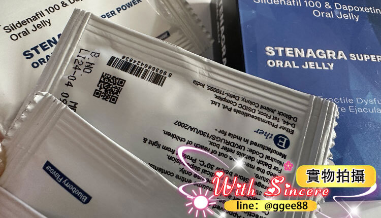 藍鑽果凍威而鋼(Stenagra Oral Jelly)由印度藥廠 Ether Pharmaceuticals 製造,每袋含有: