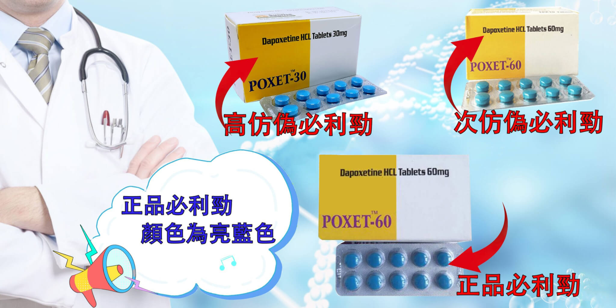 必利勁,是所有男性唯一指定的治療早洩藥物,學名被稱為達泊西汀,也叫“藍色小藥丸”。它屬於一種快速起效和代謝的選擇性5-羥色胺再吸收抑製劑,是一種用於治療16至84周歲男性早泄的藥物。然而,很多民眾在購買必利勁時經常會買到假藥或者僞藥,這讓他們非常苦惱。在不知情的情況下服用假藥會對身體造成嚴重的傷害。因此,美術藥局請到專業的醫師:遊佩雯藥師為民眾講解辨識必利勁真假的方法有哪些?希望大大們認真閱讀並記住以下內容!!