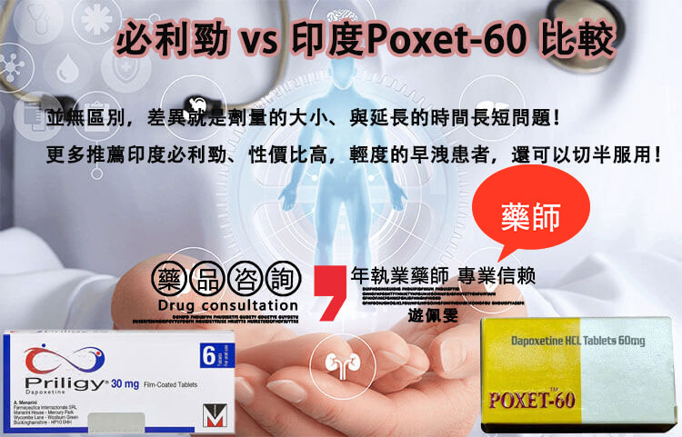 | 比較項目 | 原廠必利勁(Priligy) | 印度版 Poxet-60(Sunrise) |