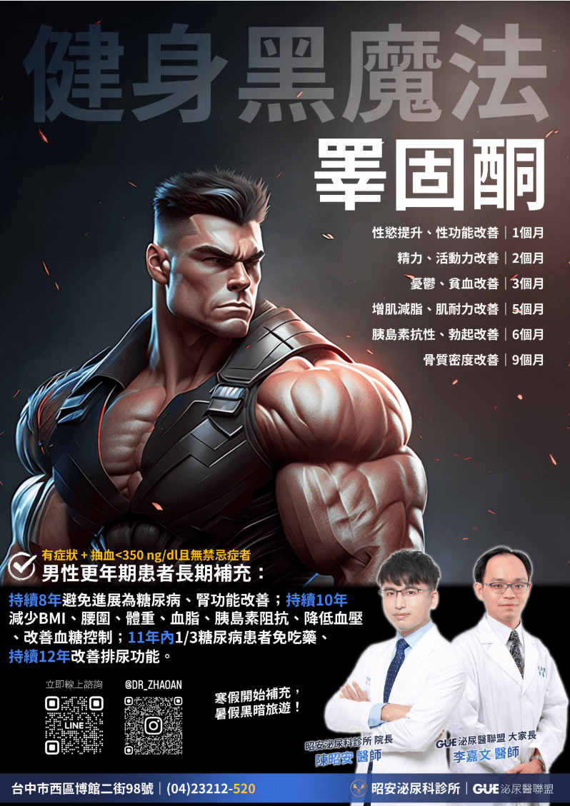 長期出現性慾下降、勃起功能異常、慢性疲勞、肌肉減少等症狀者