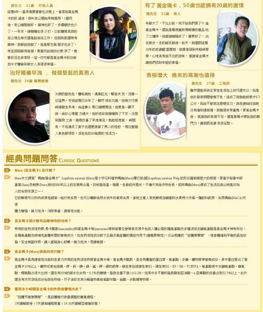 A:不同於威而鋼等藥物,瑪卡屬於營養型保健品,不依賴性刺激即可發揮體質調理與激素調節作用。