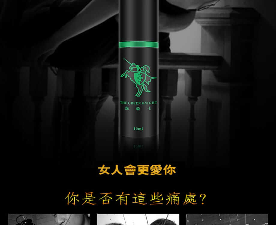 法國綠騎士持久液,針對男性早洩問題而開發的持久產品,性愛時間太短,力不從心草草了事的解決了 讓愛人達不到高潮,綠騎士專為男性設計研發,精選植物精華,吸收快,效果強勁,噴一噴激發性欲,給她愛的時間久一些 也多一些享受,重振男人雄風。